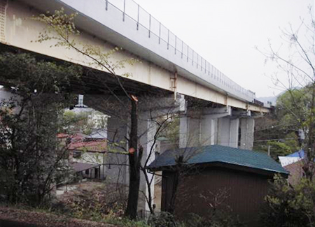 お客さまの走行安全性と快適性を高めるために老朽化した橋梁のコンクリート床版上面の打ち換えや補修をおこなうとともに、劣化の進行を抑えるために、高性能床版防水を施工します。