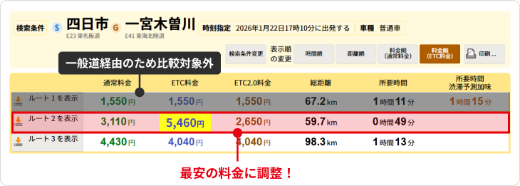 (高速道路・一般道への迂回が料金調整対象の場合)